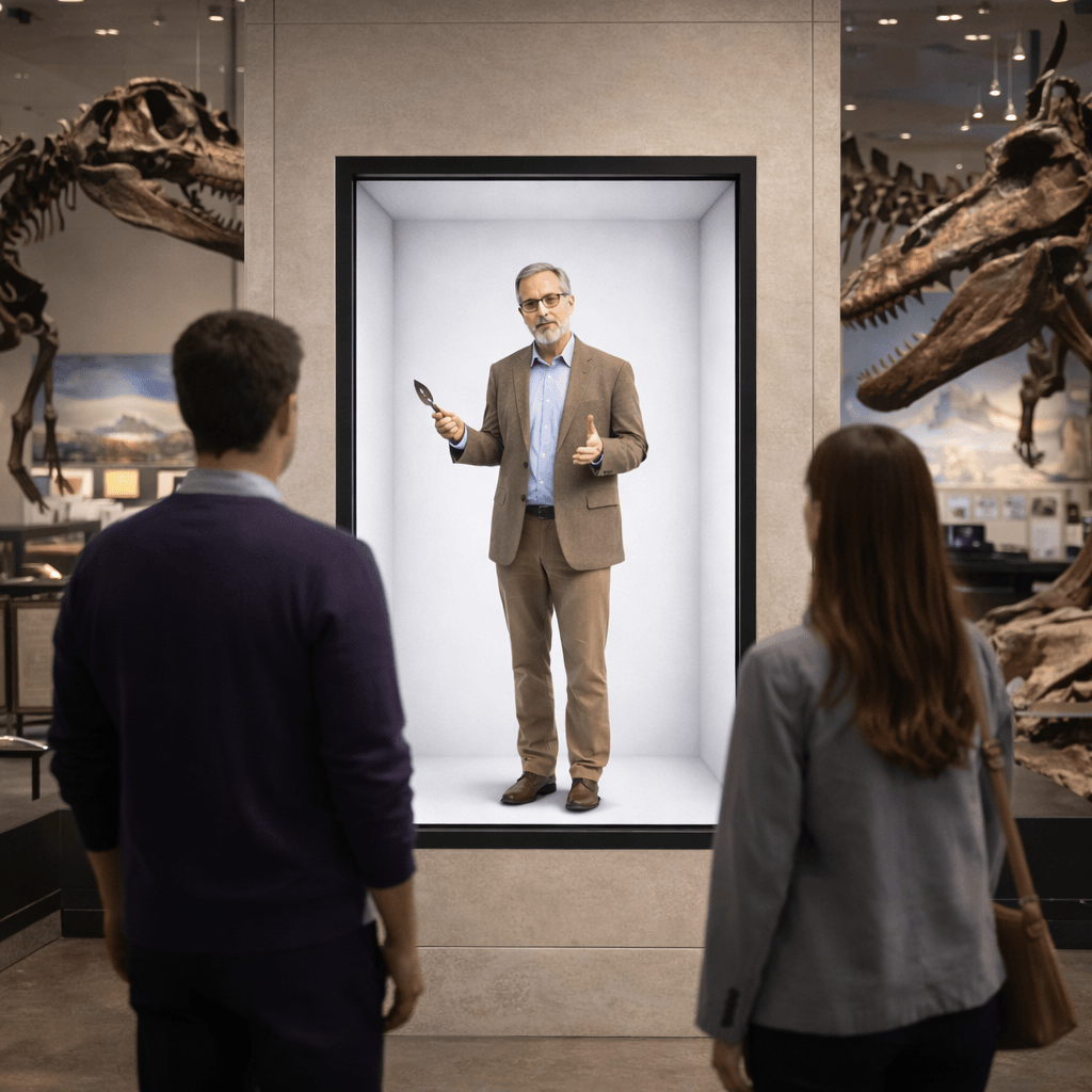 Holobox er en holografisk displayløsning, der gør det muligt at præsentere mennesker, produkter og budskaber som levende 3D-oplevelser – uden brug af VR-briller eller andet udstyr.