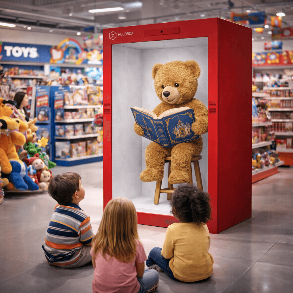 For de yngste kan Holoboxen blive et univers fyldt med leg og fantasi. Forestil dig en sød bamse, der ligger og sover i boksen. Når kameraet registrerer, at et barn nærmer sig, vågner bamsen langsomt, kigger op og siger: “Hej! Hvem er du?”
