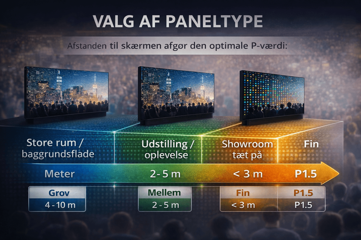 Valget af paneltype afhænger primært af hvor tæt publikum står på skærmen.
