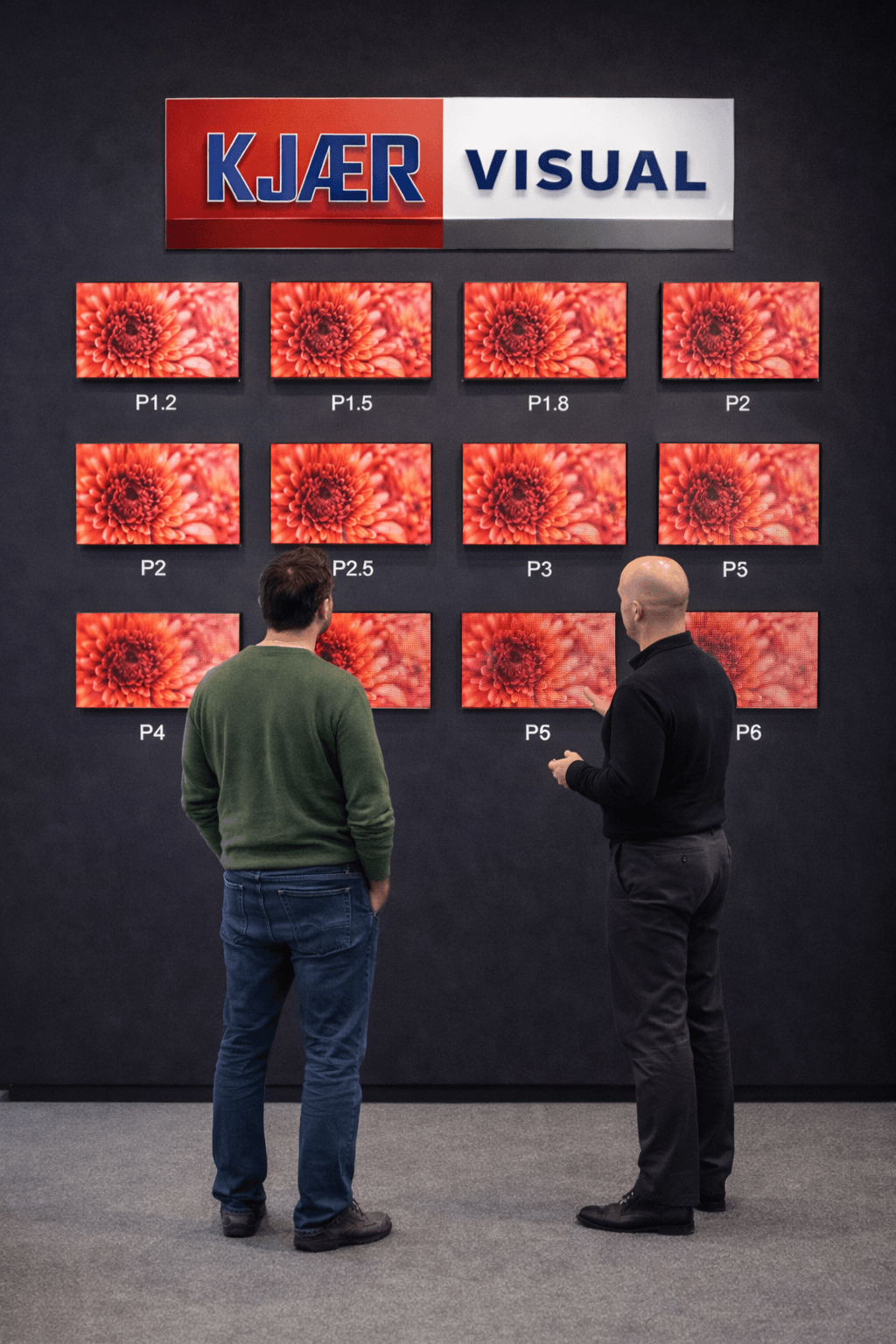 Hos Kjær Visual rådgiver vi om valg af paneltype, pixelafstand, lysstyrke og overflade, så løsningen passer til miljøet og ikke kun til specifikationerne.